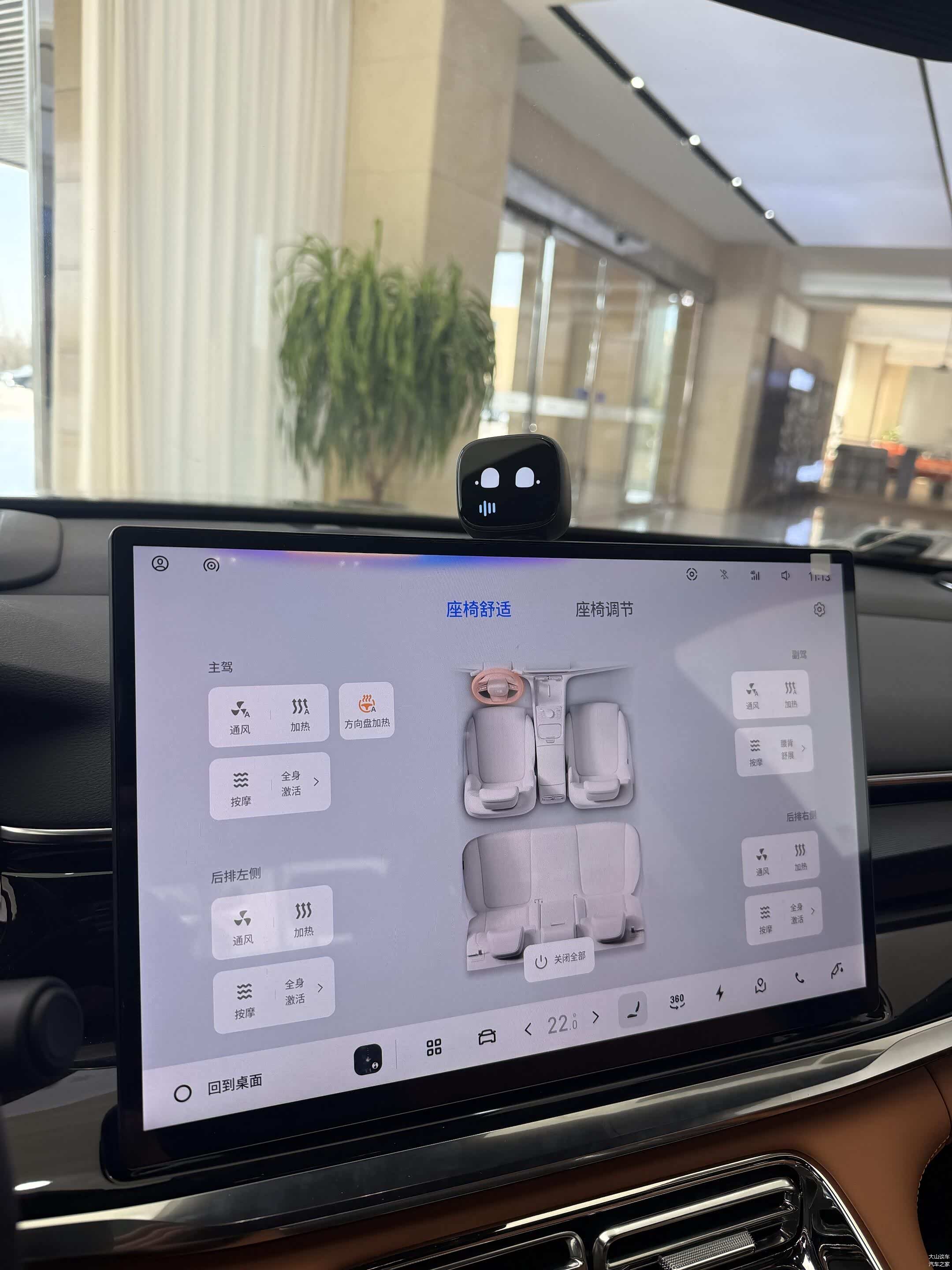 星耀7这次在舒适性配置上真的很“卷”。前后四个座椅全都支持通风、加热、按摩,后排中央扶手上还有触控按键和翻盖杯架。再加上折叠小桌板、256色氛围灯、16扬声器的Flyme Sound无界之声音响、智能香氛系统、全景天窗+电动遮阳帘……说实话,这配置水平已经摸到一些30万级豪华车的屁股了。