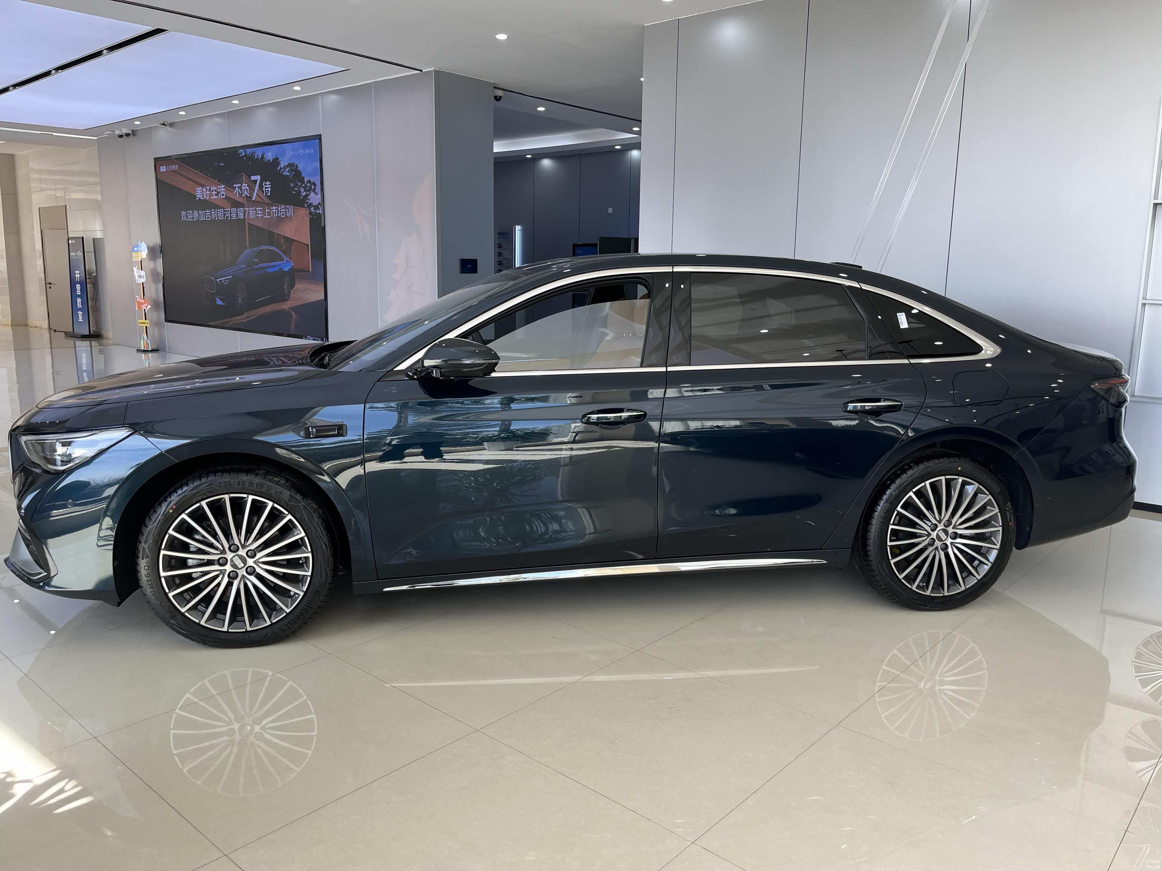 转到侧面,溜背式车身线条非常修长,车窗四周、门把手、侧裙都用了镀铬点缀,配合19英寸密幅轮毂,竟然有点行政级轿车的稳重感。车身颜色方面,目前看到的有蓝色、银色和白色,应该还会有更多选择。