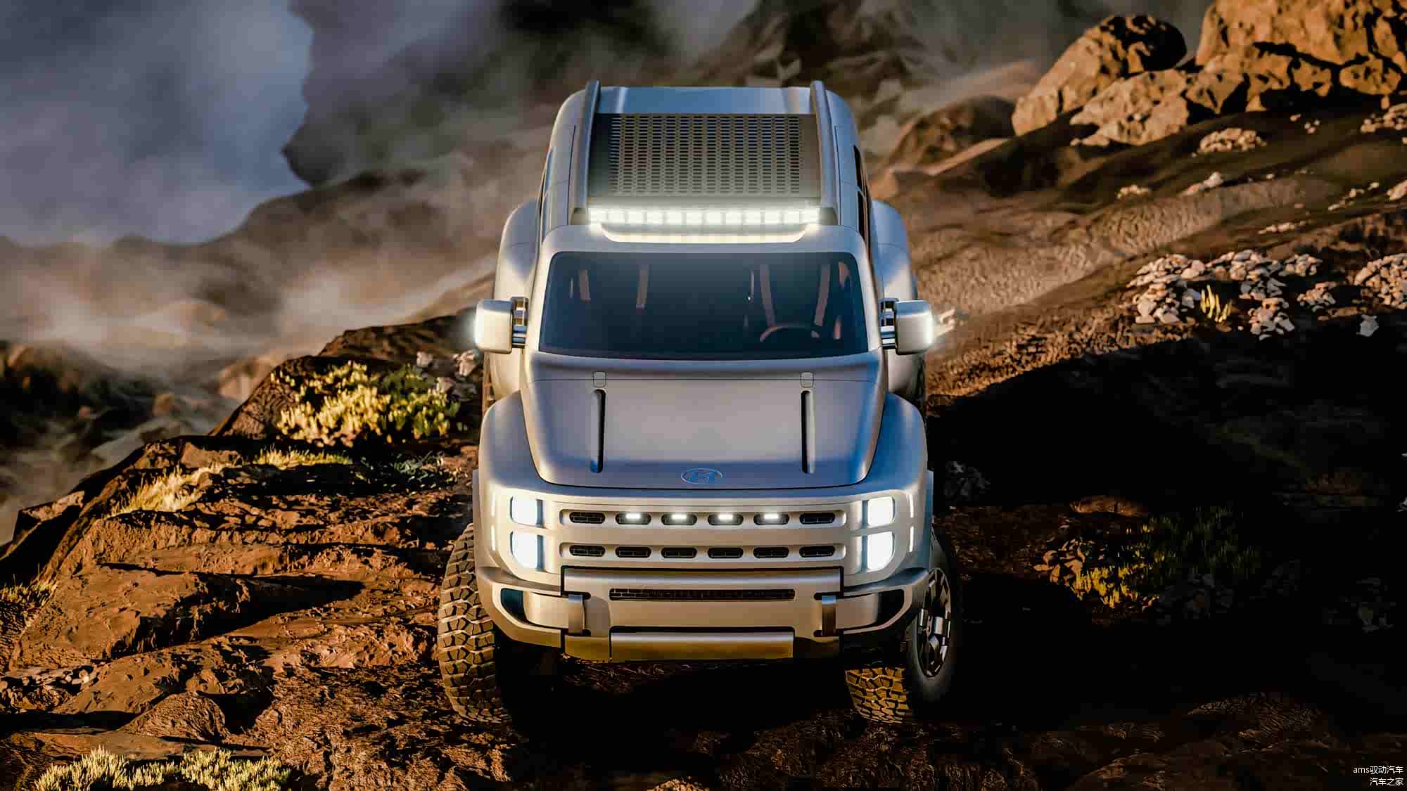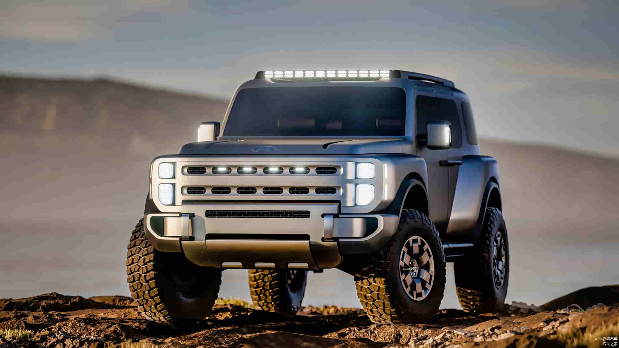 根据现代汽车的说法,这款概念车遵循了一个名为“钢铁艺术”的全新设计语言。这个设计理念的核心在于,将现代钢材的特性展现出来,同时将结构需求直接融入到外观设计中。整体造型刻意保持棱角分明的线条,比例上采用了垂直的面和超短的车身前后悬,凸显出其越野特质。