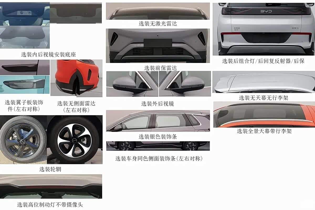 外观上,新款彻底告别现款设计。前脸换装了新样式贯穿式LED灯带,BYD车标移至发动机舱盖前端,搭配主动闭合式进气格栅,辨识度与空气动力学性能都提升了。车身尺寸有变化,长宽高为4620/1860/1630毫米,轴距达2770毫米,虽长度缩短、宽度减少、高度降低,但轴距增加,预计优化了车内空间布局,后排腿部空间会更宽敞。侧面换装半隐藏式门把手、熏黑侧裙饰板及全新轮辋,尾部采用贯穿式尾灯,整体造型年轻运动,符合主流审美。而且可选装车顶激光雷达,预计搭配天神之眼5.0系统,支持城市领航辅助,智能驾驶能力有望大幅提升。