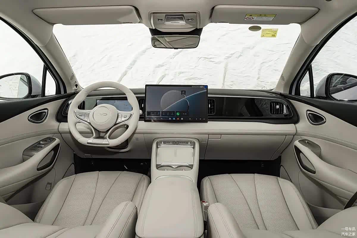 内饰沿用海狮05EV风格,中控台有贯穿式黑色钢琴烤漆饰板,内嵌液晶仪表屏与悬浮中控屏,预计搭载最新DiLink智能座舱系统。新车提供杏仁米、暮色蓝两种新内饰风格,满足个性化需求。轴距增加后,后排腿部空间预计有明显改善,头部空间实际体验待上市验证。