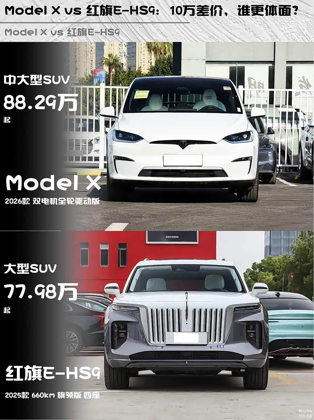 今天来聊聊两款百万级纯电SUV的硬核对比!Model X 2026款双电机全轮驱动版 vs 红旗E-HS9(图片 | 参数 | 询价) 2025款660km旗领版四座,谁才是你的心头好?🔥