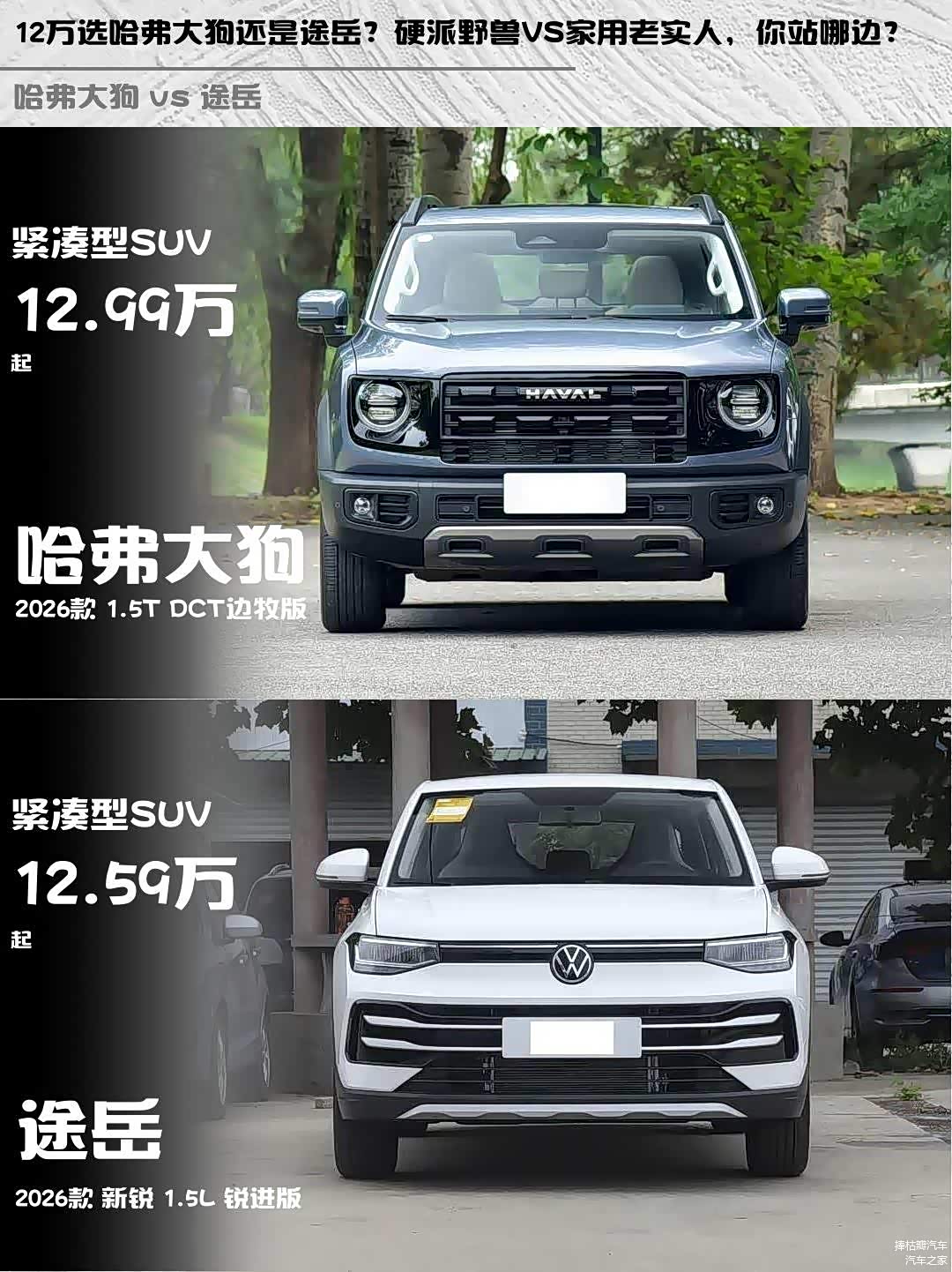 最近在纠结12万级SUV选哪款? 哈弗大狗(图片 | 参数 | 询价)2026款1.5T边牧版和途岳2026款新锐1.5L锐进版深度对比来啦!两款都是热门选手,但性格完全不同,看完这篇你就知道谁更适合你👇