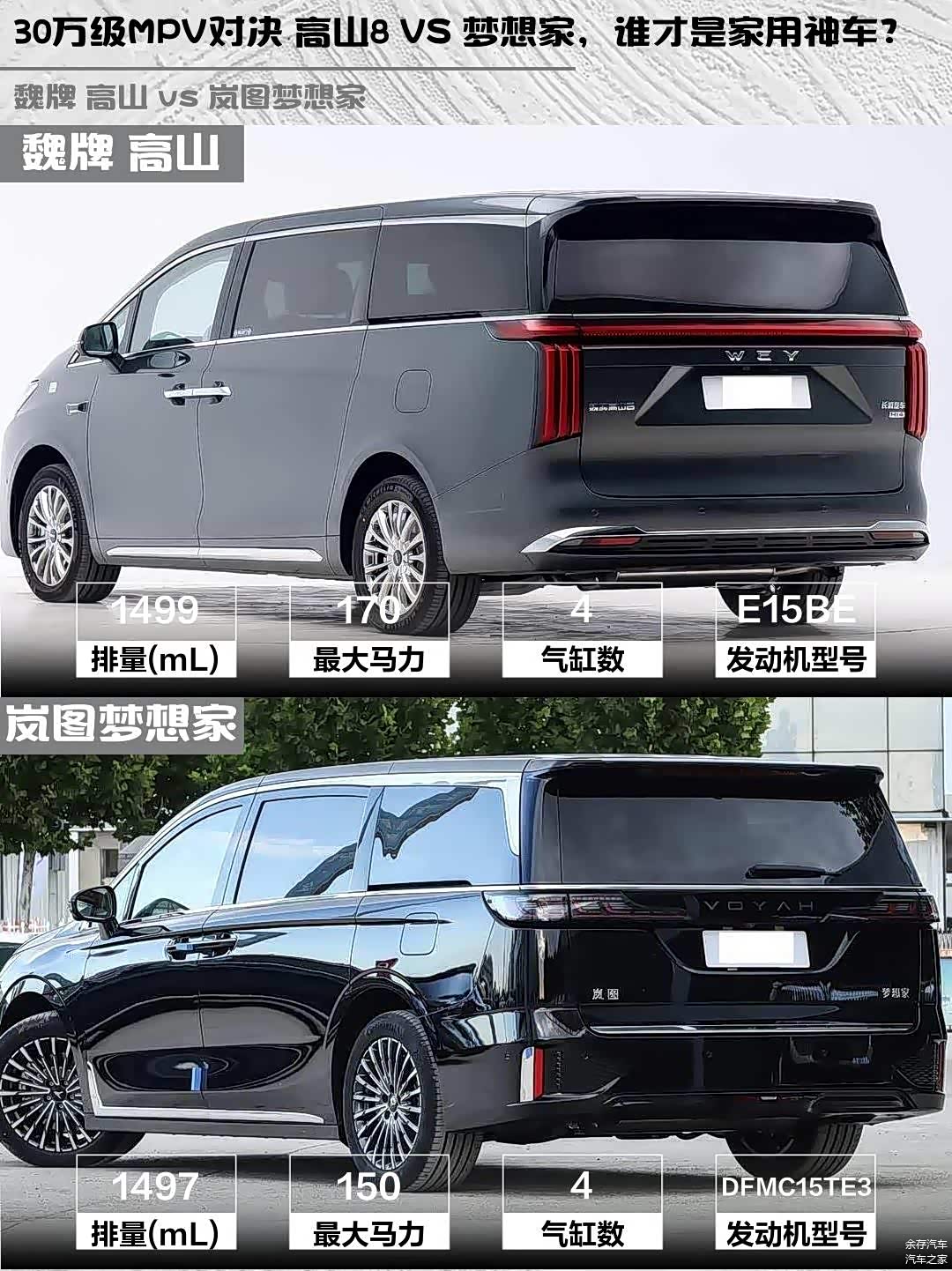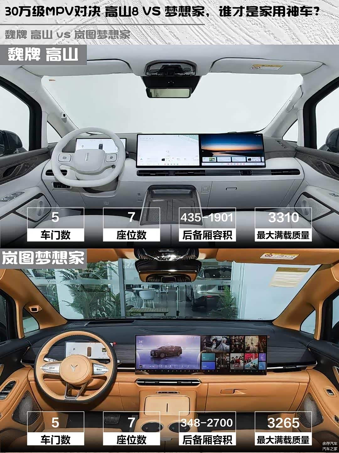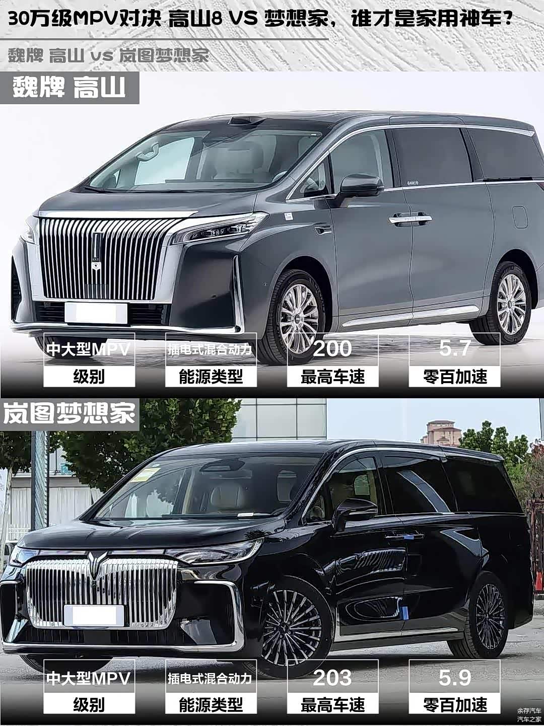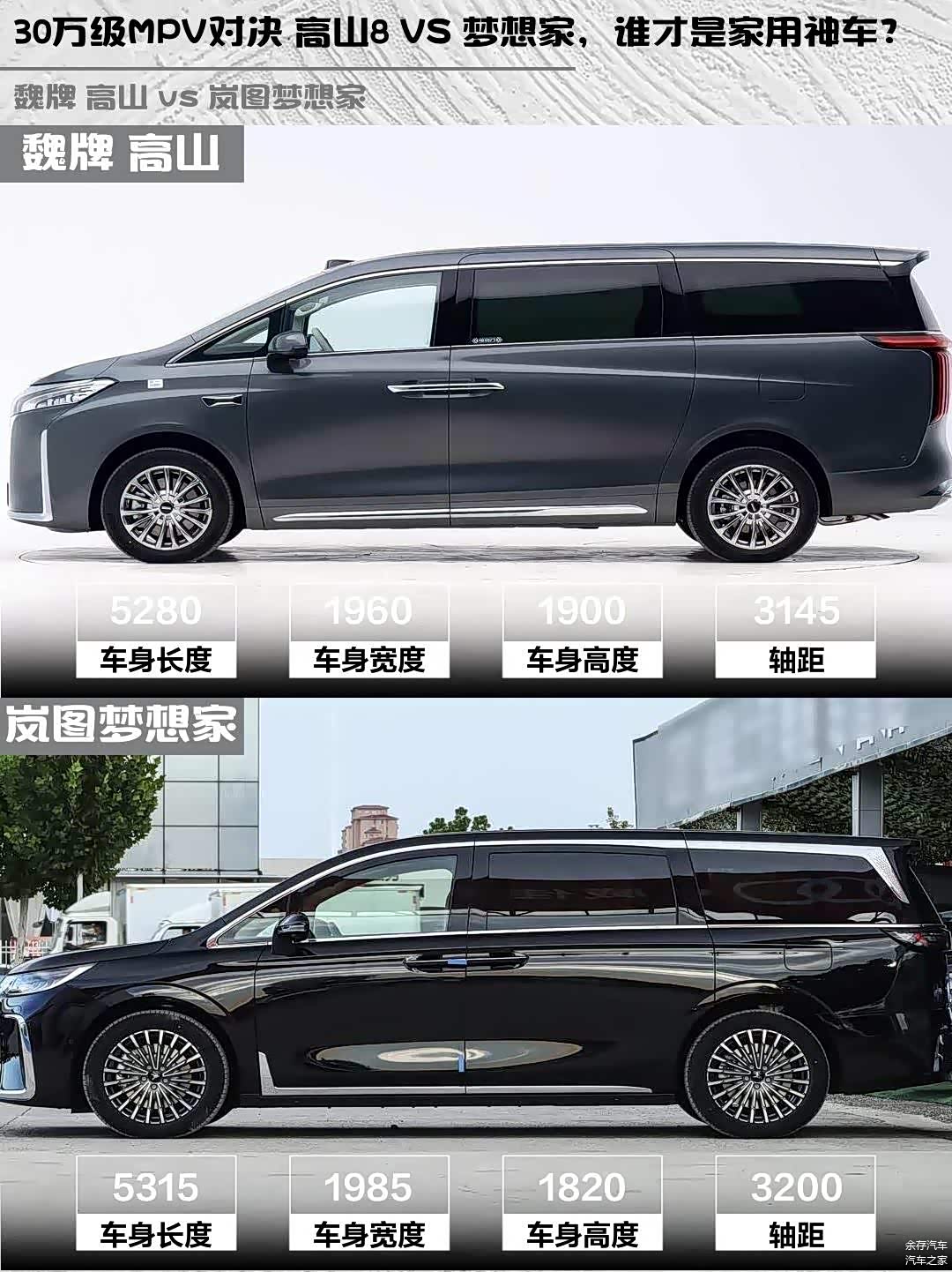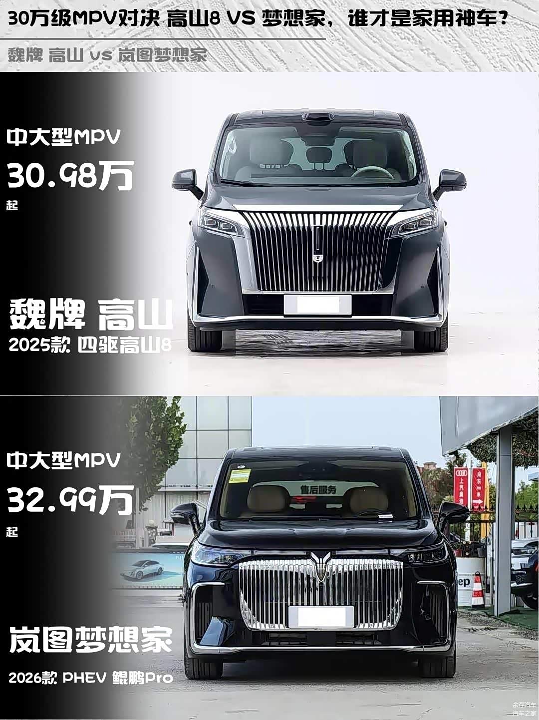 最近在考虑换一辆新能源MPV,主要纠结魏牌高山2025款四驱高山8和 岚图梦想家(图片 | 参数 | 询价)2026款PHEV 鲲鹏Pro,今天就来聊聊这两款车的实际体验对比!🚗💨
