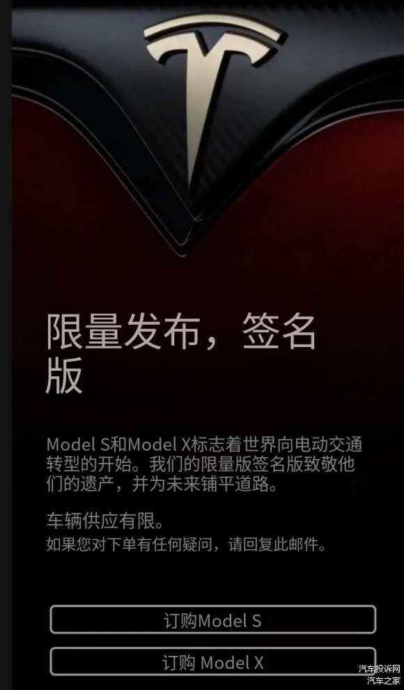 4月12日消息,3月底停止接受Model S与 Model X(图片 | 参数 | 询价)定制订单后,特斯拉如今正邀请部分粉丝购买刚刚推出的限量极少的"签名版"Plaid系列车型。