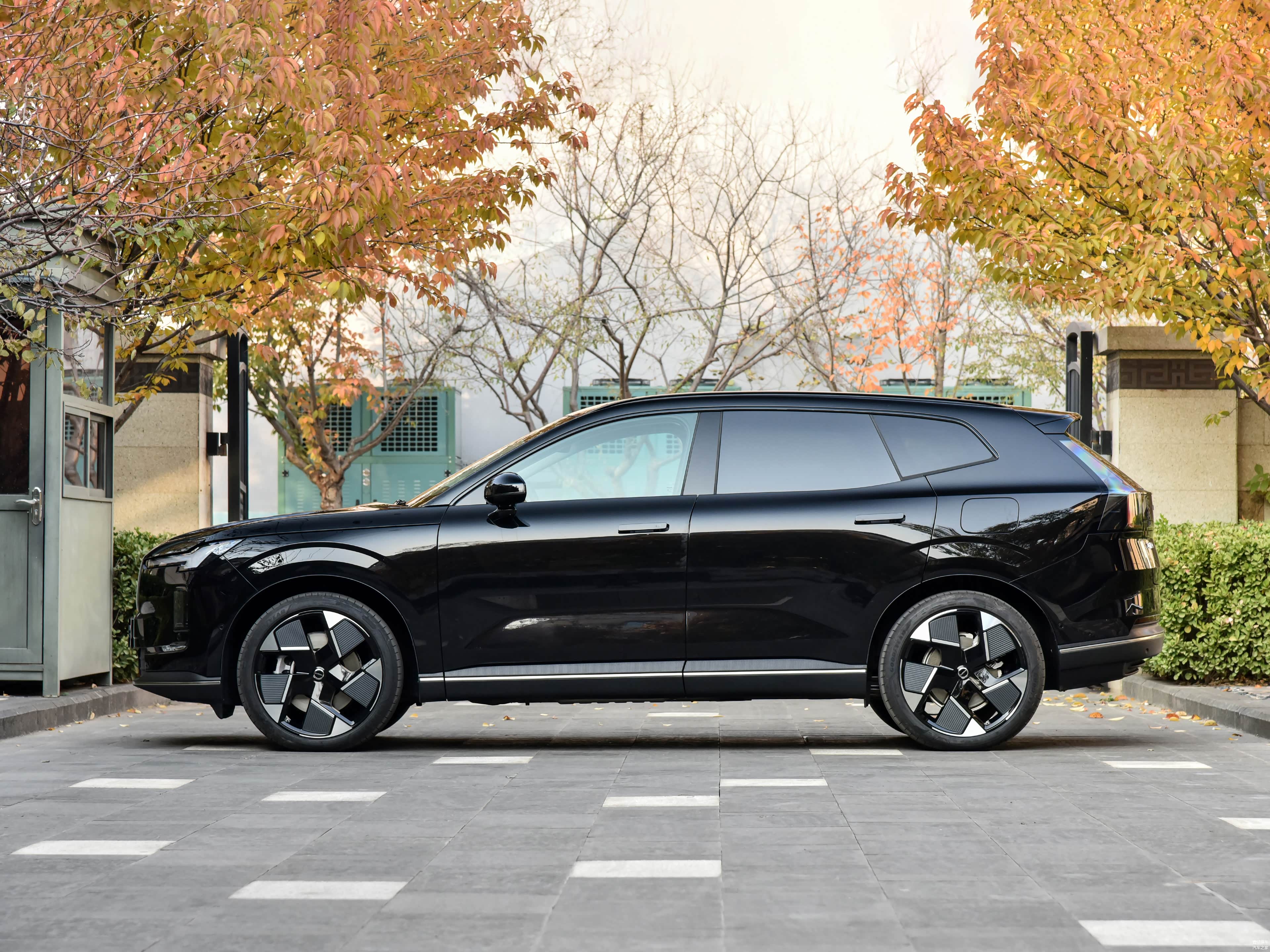 侧面部分,车身线条以平直为主,轮廓处理偏向简洁取向。轴距达到2895mm,使整车在视觉上呈现出更长的车身比例,同时也为后排空间提供基础。整车长宽高为4815/1890/1650mm,这一尺寸组合处于中型SUV主流水平。轮圈提供19英寸、20英寸和21英寸三种规格,用户可以根据使用场景在舒适性与视觉表现之间进行取舍。此外,无边框车门和外后视镜造型的应用,更偏向结构优化和风噪控制,并非单纯造型装饰。