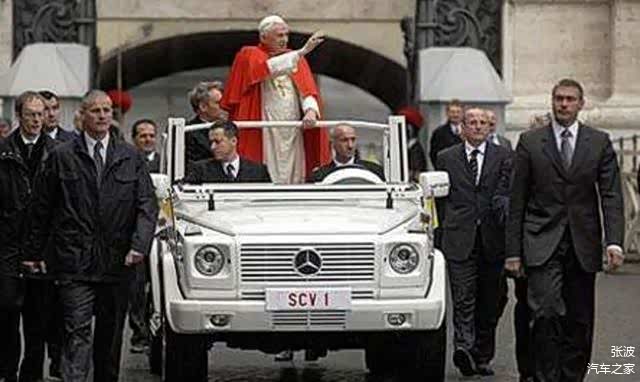 奔驰生产了一辆敞篷版的白色G500教皇用车,教皇将用这辆梵蒂冈专用白色敞篷车在圣彼得广场进行惯常的周三赐见活动。这款车是基于G500,其装备了折叠的风挡和扶栏,同其前代车型一样同样喷以梵蒂冈白色车漆。内饰同样采用白色,教皇将站立接待朝圣者。