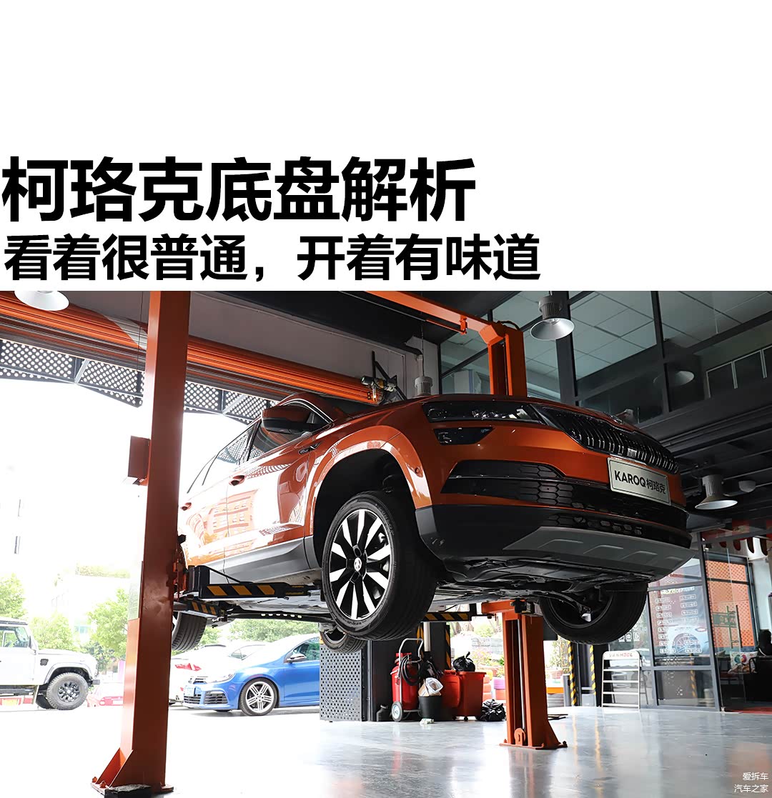 上期柯珞克试车时,我们曾说这部SUV悬挂调校很有技术含量,虽然悬挂结构不高级,前麦弗逊式/后扭力梁式,但开起来操控出色、乘坐舒适,不是一般SUV所能达到的境界,让人心生钦佩之余基本不会介意它是非独立悬挂,这种现象即使在大众体系中都不多见,所以我们对斯柯达柯珞克的底盘有了浓厚兴趣,少不了架起车研究一番。