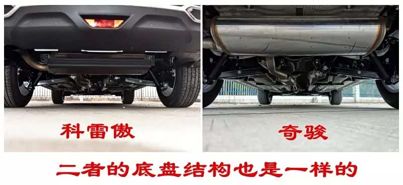 要说差别也是有的。科雷傲的前后轮距都要比奇骏宽一些,这让科雷傲看起来更稳重一些,高速行驶的稳定性也更好;还有就是科雷傲比奇骏要重80公斤,这个重量差距很大程度上来自于奇骏的轻量化车身,比如它使用了塑料材质的后尾门以及一些我们还不知道的减配。