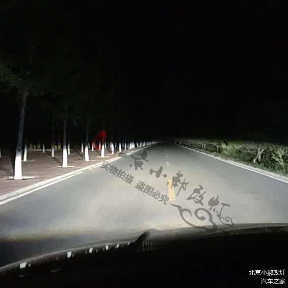 原车的远光效果:照过去亮度就只集中在两个点,范围极小,说实话,这对夜间行车安全是没有保障!