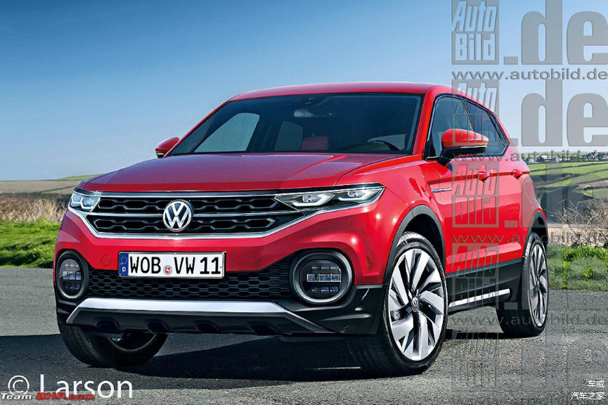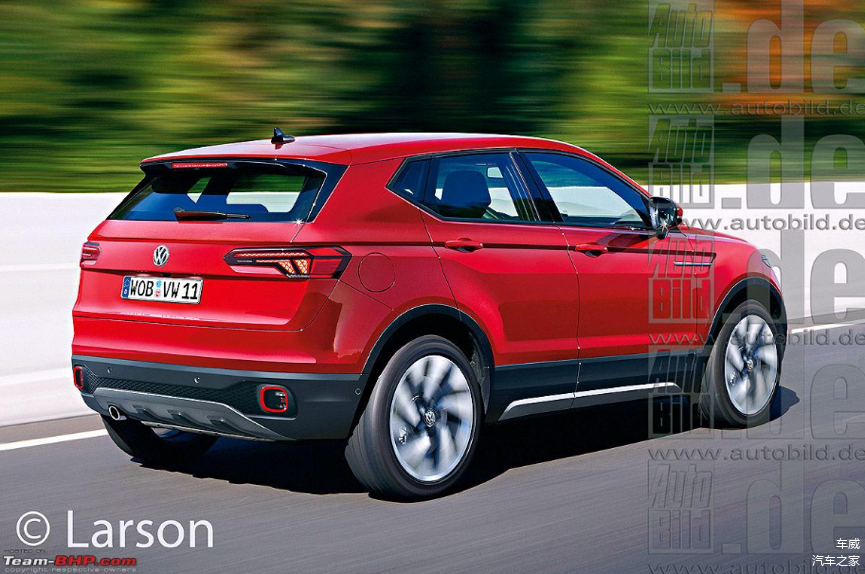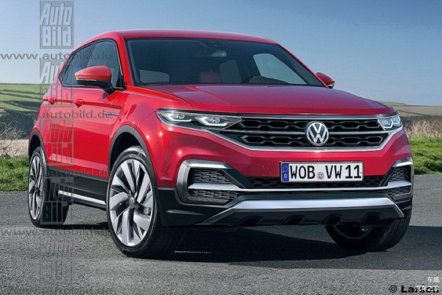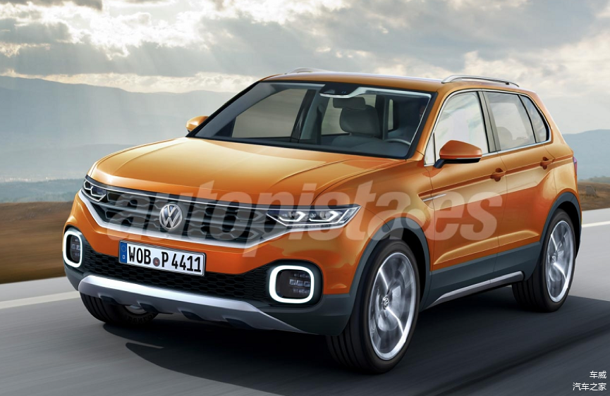 【AutoBild的T-Cross效果图有两种方案,最大的不同在于日间行车灯的造型,共同点是都有个性的哑光前包围,硬朗的腰线以及简洁有力的尾部设计】