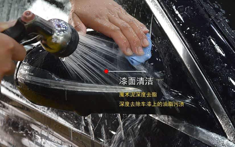 最后进行漆面去脂工作,彻底去除车身杂质,此处为纯手工作业,让爱车的每一寸“肌肤”都得到应有的呵护