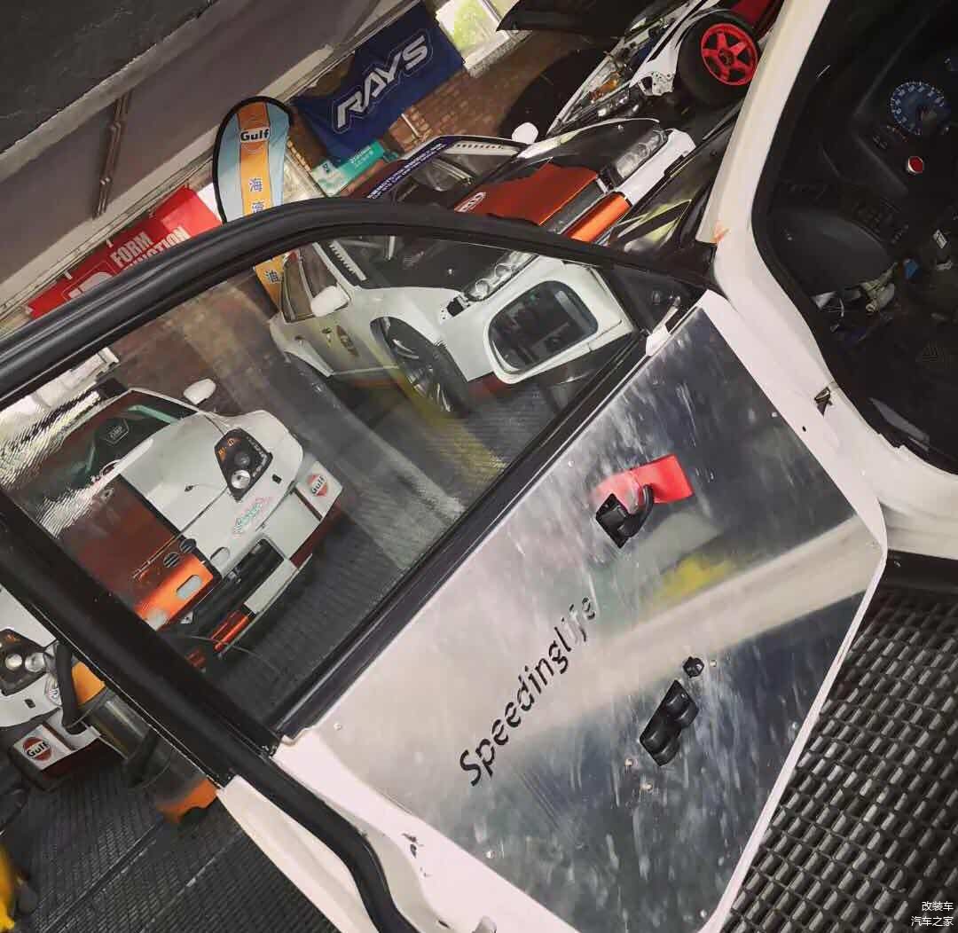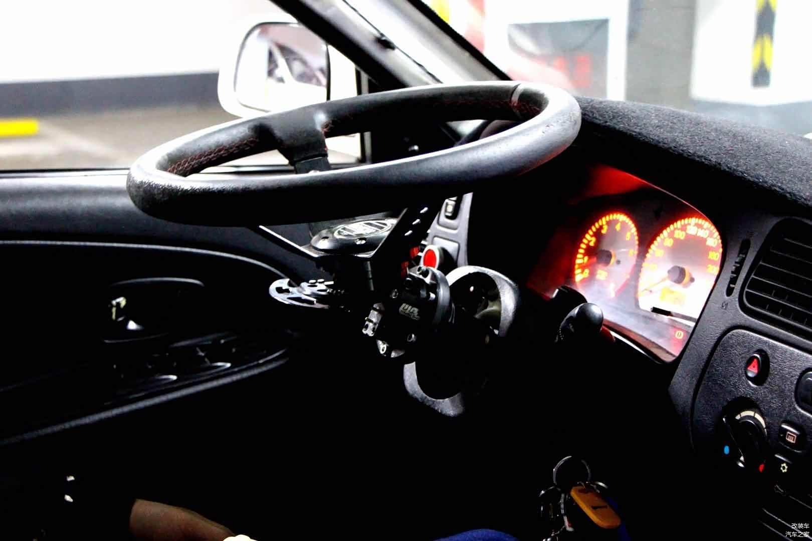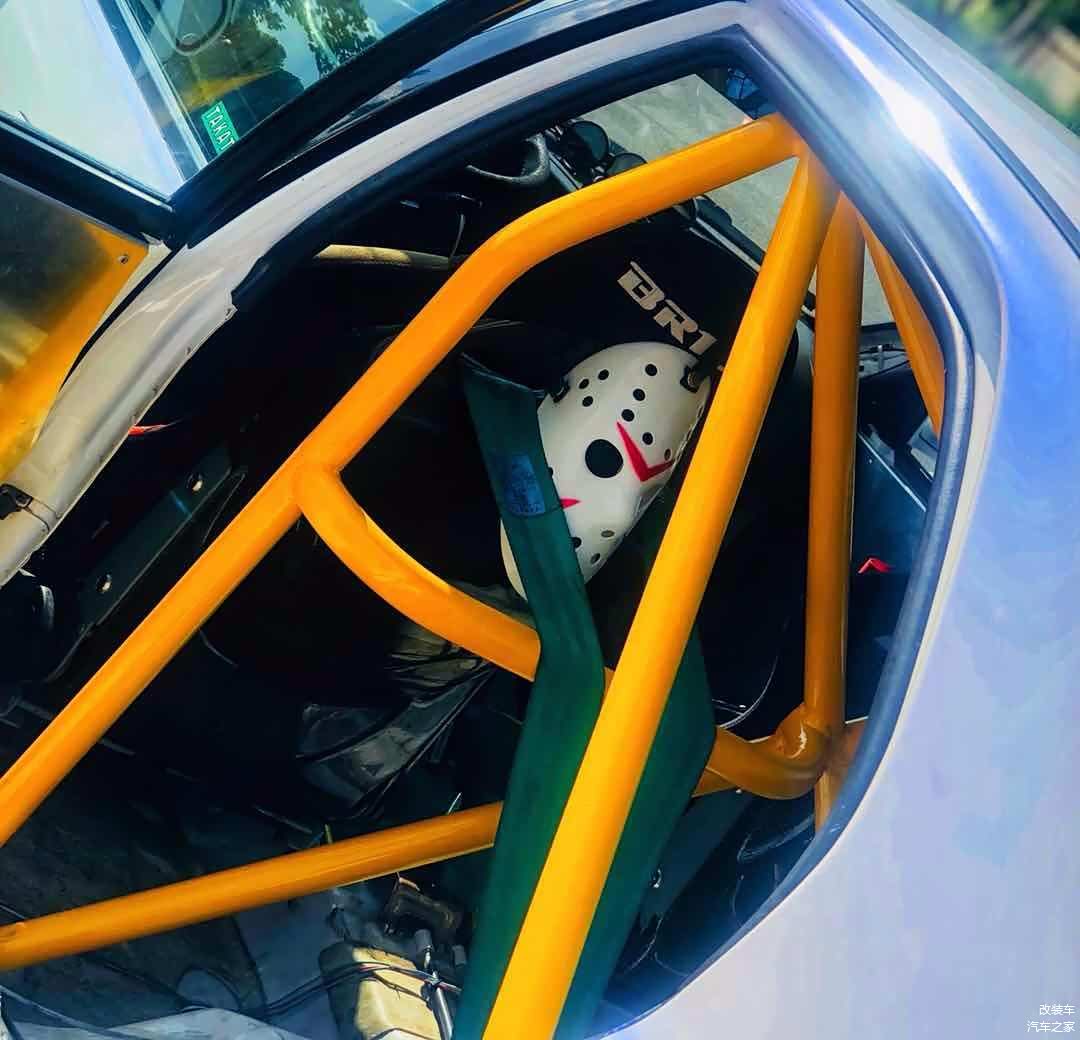 内饰方面已经被车主全部拆空了,并定做了半笼防滚架。既然内饰都拆空了,怎么能少一个赛车桶椅呢?除此之外还有可以把车手牢牢固定住的TAKATA四点安全带。