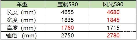 从数据来看,风光580的车身尺寸要大于宝骏530,这与它定位是7座车型有关。但实际上,两车车身尺寸和空间在一个水平。
