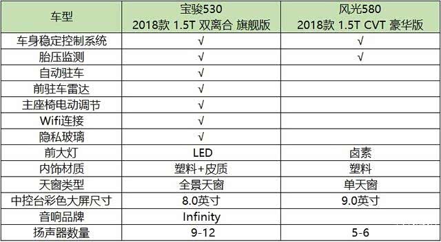 配置方面,宝骏530以舒适和科技为主,ESP车身稳定系统作为标准配置出现,定速巡航、电子手刹、一键启动、车门电动车窗、自动驻车等年轻人较为看重的科技配置都在宝骏530上看到,极致的NVH跟宝骏530车内的infinity品牌音响更是相得益彰。相较之下,风光580在配置上则要逊色得多。