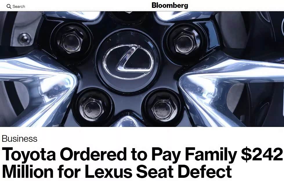 上周五(8月17日),美国得州达拉斯法院终于就该追尾事故诉讼做出判决:丰田高档品牌雷克萨斯的ES300车型座椅涉嫌存在问题,勒令丰田向乘坐该车的夫妇支付共约2.42亿美元(约合人民币16.6亿元)。
