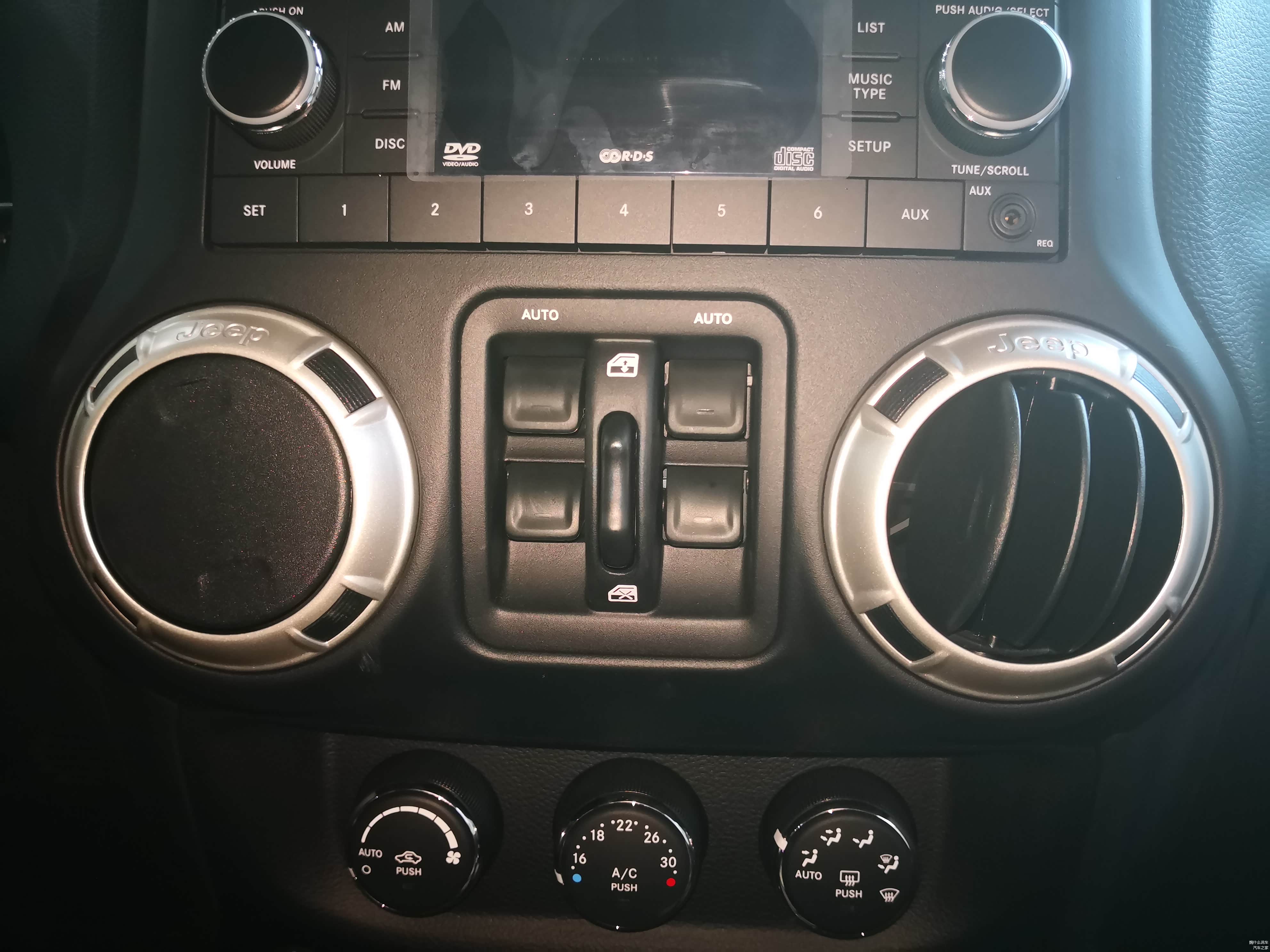 坐在车里“瞎折腾”了半天确实有些热,按下车窗玻璃凉快凉快再接着聊!诶,车窗按键在哪?难道这车的玻璃不能控制?找了半天,原来牧马人卢比肯的车窗控制按键就在中控的正中间,我相信对于绝对多数没有接触过它的朋友一时半会儿绝对找不到它!