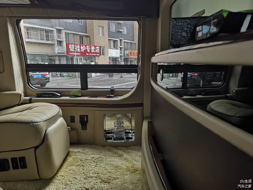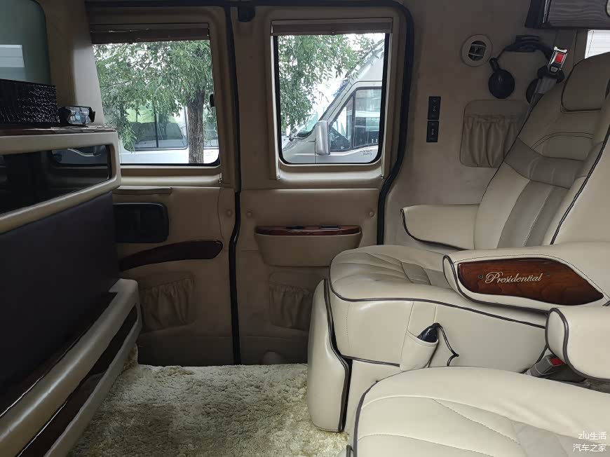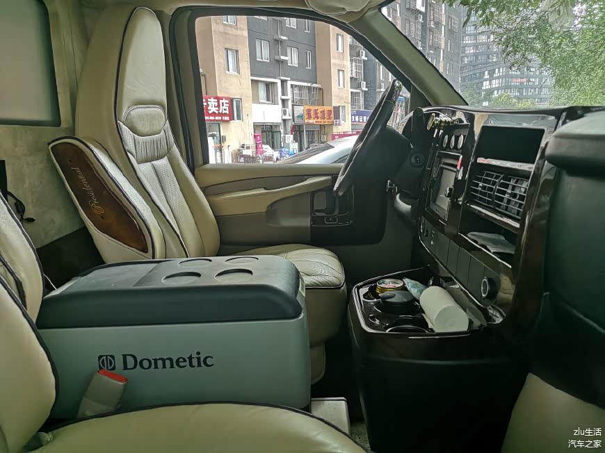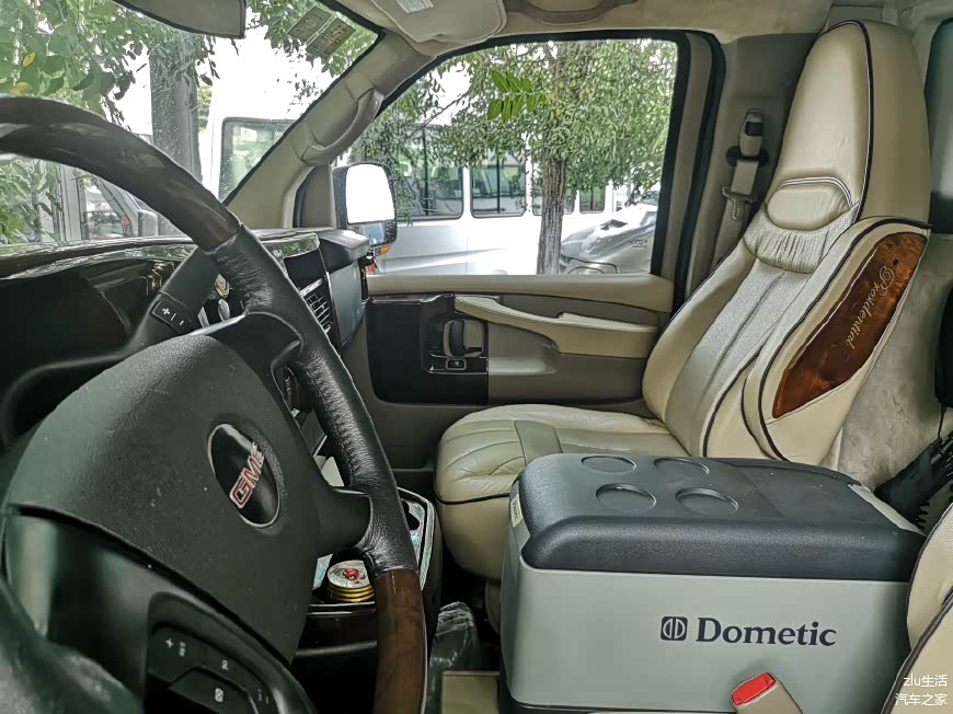 中间应该是布置了一个dometic的车载冰箱。此外车上还配置了车载电话,无线上网,车载冰箱,车载气泵、车载吸尘器等一系列豪华配置。
