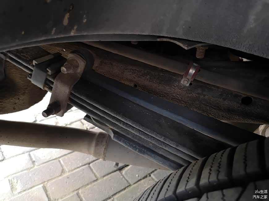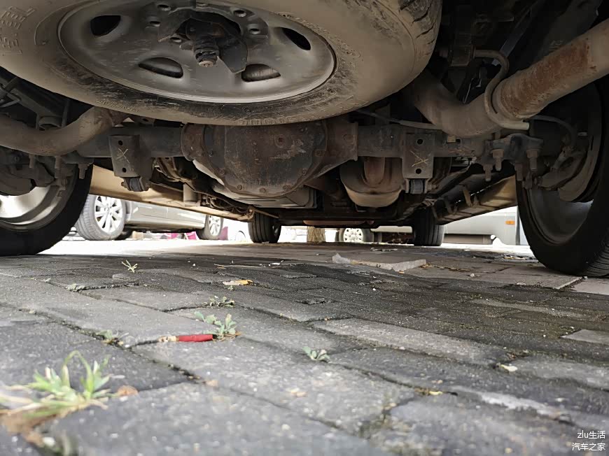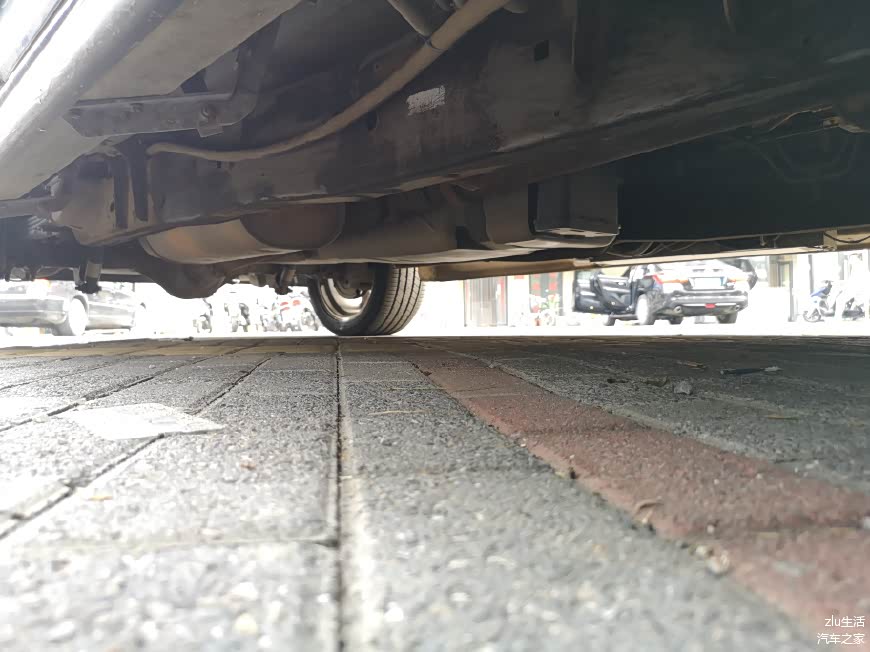 来一个底扫,非承载式车身的纵梁非常的粗壮。