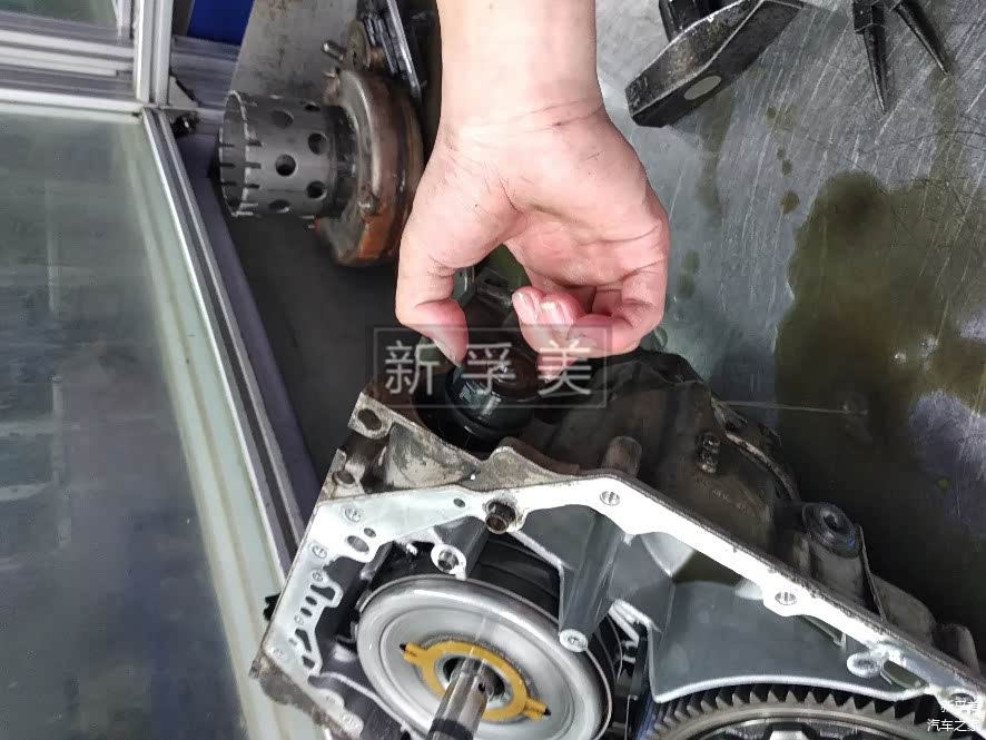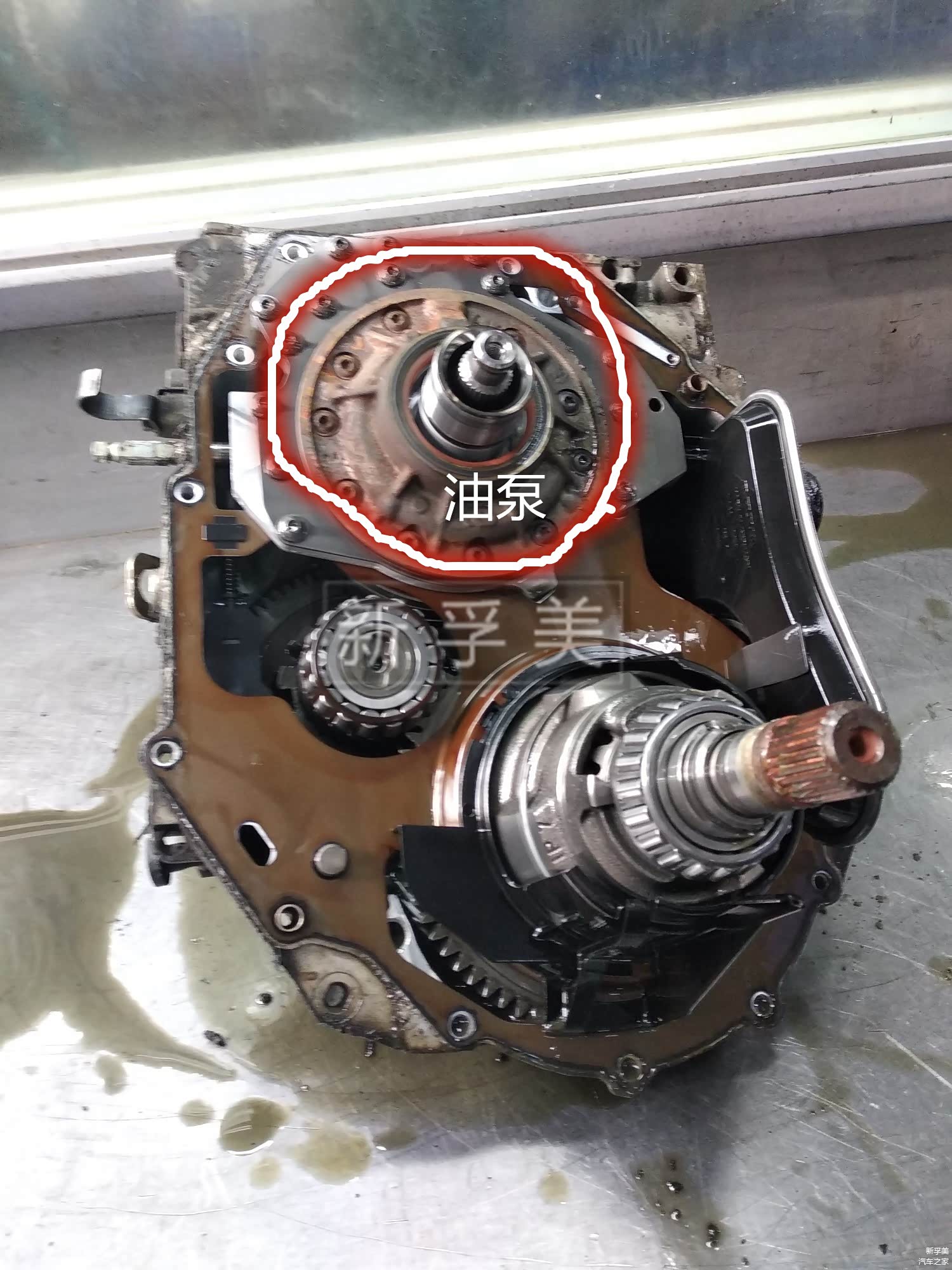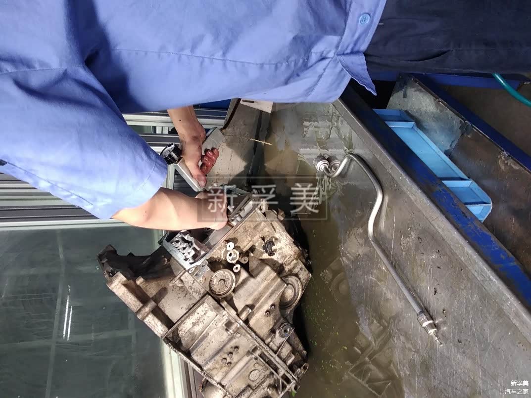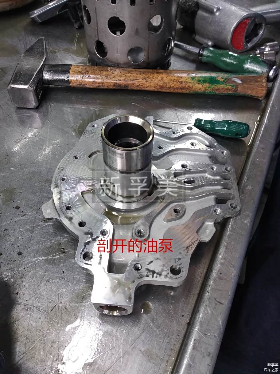 油底壳上厚厚一层油污,变速箱内磨损下来的杂质很大一部分聚集在这里。
