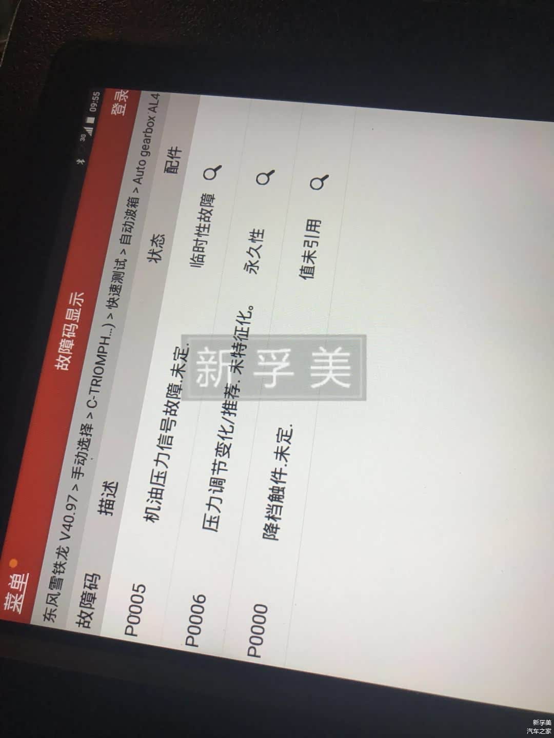 来看一下这个案例,09年的一款雪铁龙凯旋,2.0排量,行车里程19万公里,车主只记得好几年前换过一次变速箱油,这几年都没换过。目前行驶中2升3档有顿挫,偶尔也有起步挂挡不走车,报故障码:
