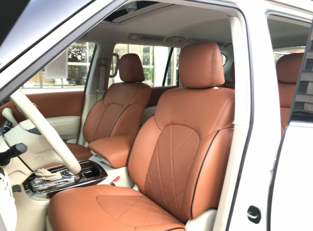 18款 中东版日产尼桑 途乐Y62 汽油4.0SE 标配;7座 2气囊、18轮、天窗、电尾、氙灯LED日间行车灯、自动大灯和定时延迟关闭、大灯清洗、LED尾灯、前后雾灯、倒影、冰箱、真皮多功能方向盘、后扰流板、电动车窗(四门一键升降)、智能卡、一键启动、遥启、驾驶员座椅8向电动调节带电动腰部支撑、外后视镜:电动调节和折叠,车身同色带转向灯和水坑灯、双区自动空调、8英寸显示屏、全尺寸备胎、陡坡缓降/坡起辅助、四驱模式、巡航控制、后差速锁、胎压监测