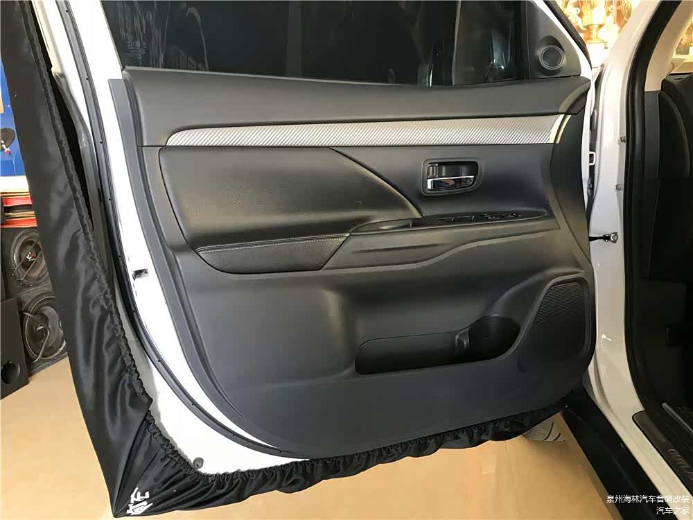 但对于爱好音乐的追求者来说,唯一不足的就是汽车音响系统所表现的音质达不到要求,众所周知,一般的原车音响效果并不是很理想,原车喇叭输出功率较小,音源处理不够干净,层次不够丰富,高、中低层次不够分明等一系列情况都严重影响了音质效果,出于对音响高品质的追求,车主选择升级改装汽车音响最大程度提升音质,将音质效果发挥到最佳。在改装汽车音质效果的同时,车装饰同样可以让人赏心悦目,在专业技师们的精心改造下,一台崭新的三菱欧蓝德就诞生了。