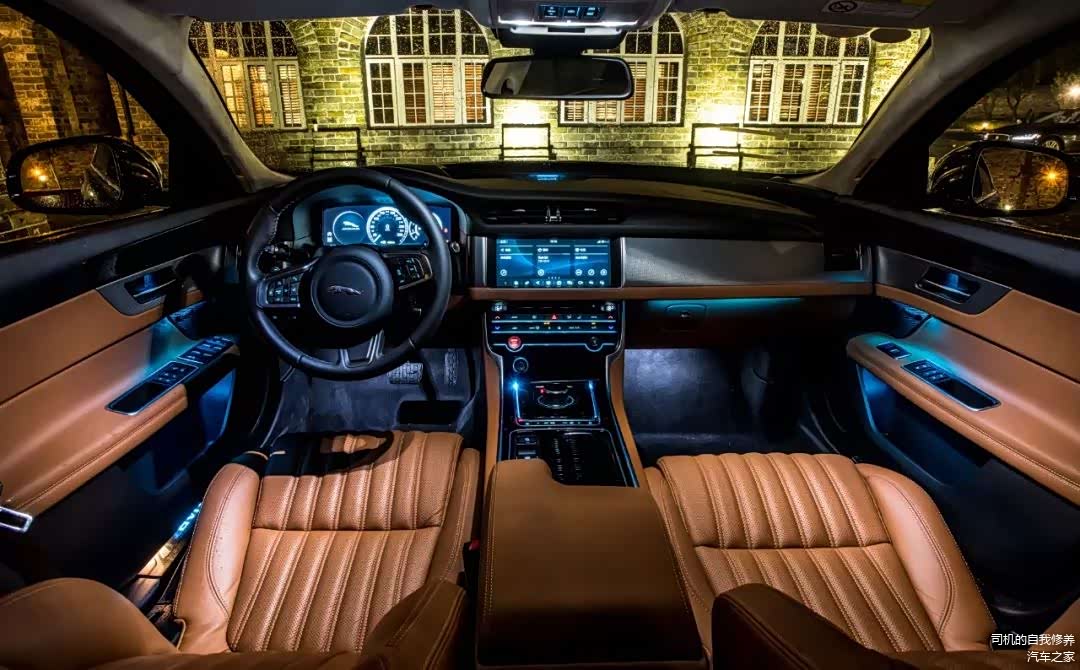 我很久没有被一款车的内饰所惊艳到了,但2019款捷豹XFL的内饰将古典和现代感的结合真是我见过最恰到好处的。棕色的内室主色调,竖条纹的座椅像是来自70年代的豪华,甚至让我第一时间想起了三贱客时代TG录影棚里从劳斯莱斯里拆下来的那个绿条椅。而银色的金属装饰,数字仪表盘和横向嵌入式的中控屏幕又十分具有现代感。