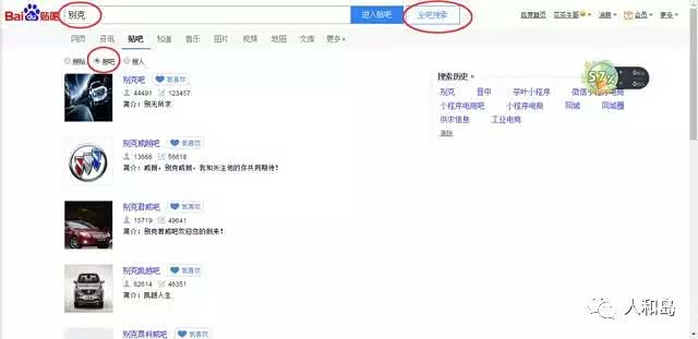 贴吧,其实上面的流量还是很可观的,笔者之前做过别克汽车的贴吧,就以别克为例吧。PC端打开百度贴吧(如上图),搜索框右上方有一个“全吧搜索”按钮,在搜索框内输入关键词“别克”,点击“搜吧”就能找到很多关于“别克”的精准贴吧。