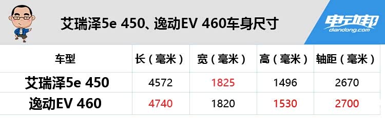 ▲左为逸动EV 460,右为艾瑞泽5e 450