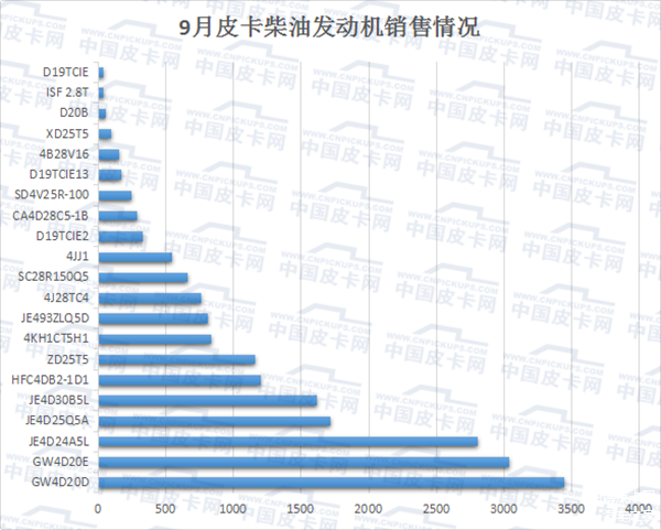 日前,中国皮卡网获悉了9月份国产皮卡市场的销售数据,笔者从中整理出了单月皮卡发动机销售数据,并简要整理。从大数据处理与分析中帮助大家了解发动机与皮卡之间的市场关系。