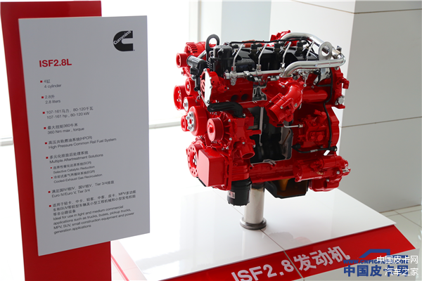 北京福田康明斯是美国康明斯公司与北汽福田以50:50合资组建的轻型柴油发动机生产企业,是中国最大的轻型柴油发动机制造基地之一。由福田康明斯生产的ISF 2.8T柴油机主要搭载于高端皮卡拓陆者S系列上,最大功率130kW,峰值扭矩365N·m。