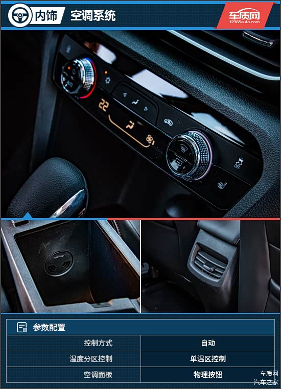 空调控制面板内并为引入触控元素,其中温度与风量调节为旋钮操作,便利性方面值得肯定,且镀铬装饰对提升车内质感功不可没。重点在于,第二排空调出风口与防PM2.5空调滤芯均未缺席,进一步优化了驾乘舒适性表现。不仅如此,中央扶手箱内部也设计有出风口,称之为“冰箱”或许有些夸张,但能够放慢冷饮在炎炎夏日中的升温速度也是极好的。