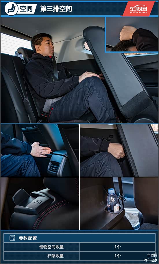 作为一款7座车型,沃兰多的第三排乘坐空间并非“仅供应急所需”,在为第二排乘员预留一掌腿部空间的前提下,体验者在第三排的头部与腿部空间均为一拳。满足两位成年人带1-2位儿童或5-6口之家周末郊游或“农家乐”不成问题。需要说明的是,第二排右侧座椅设计有“一键进入”功能,而第三排仅左侧轮眉处提供了带限位装置的杯架,储物空间稍显不足。