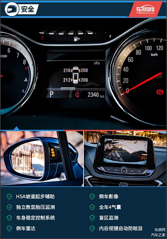 雪佛兰沃兰多全车共装备4个安全气囊,同时坡道起步辅助、车身稳定及牵引力控制系统等驾驶辅助功能也一应俱全,且倒车影像带有随动辅助线,保障日常行车安全不成问题。值得一提的是,沃兰多的胎压监测装置,可通过行车电脑反馈实时胎压数值,便于驾驶员规避爆胎风险。此外,小编试驾的顶配车型还装备有盲区监测系统,当两侧有车辆驶入时,会通过外后视镜处闪烁的指示灯,告知驾驶员潜在的事故隐患。