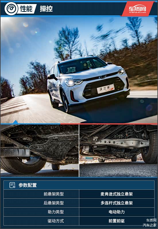 雪佛兰沃兰多采用前麦弗逊后多连杆式四轮独立悬挂,就驾乘感受而言,其减震系统阻尼虽然稍显硬朗,但能够“尽职尽责”的过滤路面细碎颠簸,而高速行驶时底盘表现扎实沉稳,并线动作一气呵成且车身的“整体感”十分出众。驶过落差较大的坑洼时,车内在所难免的会伴随有冲击感,不过悬挂系统具有一定的韧性,加之车内座椅兼顾了支撑性与柔软度两方面,沃兰多的驾乘舒适性表现仍值得肯定。