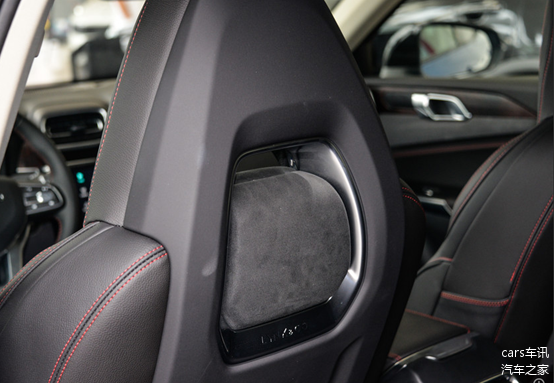 座椅和身体接触的位置采用了打孔翻毛皮的设计,顶部还加入了领克品牌的英文标识,强调其品牌的意识。