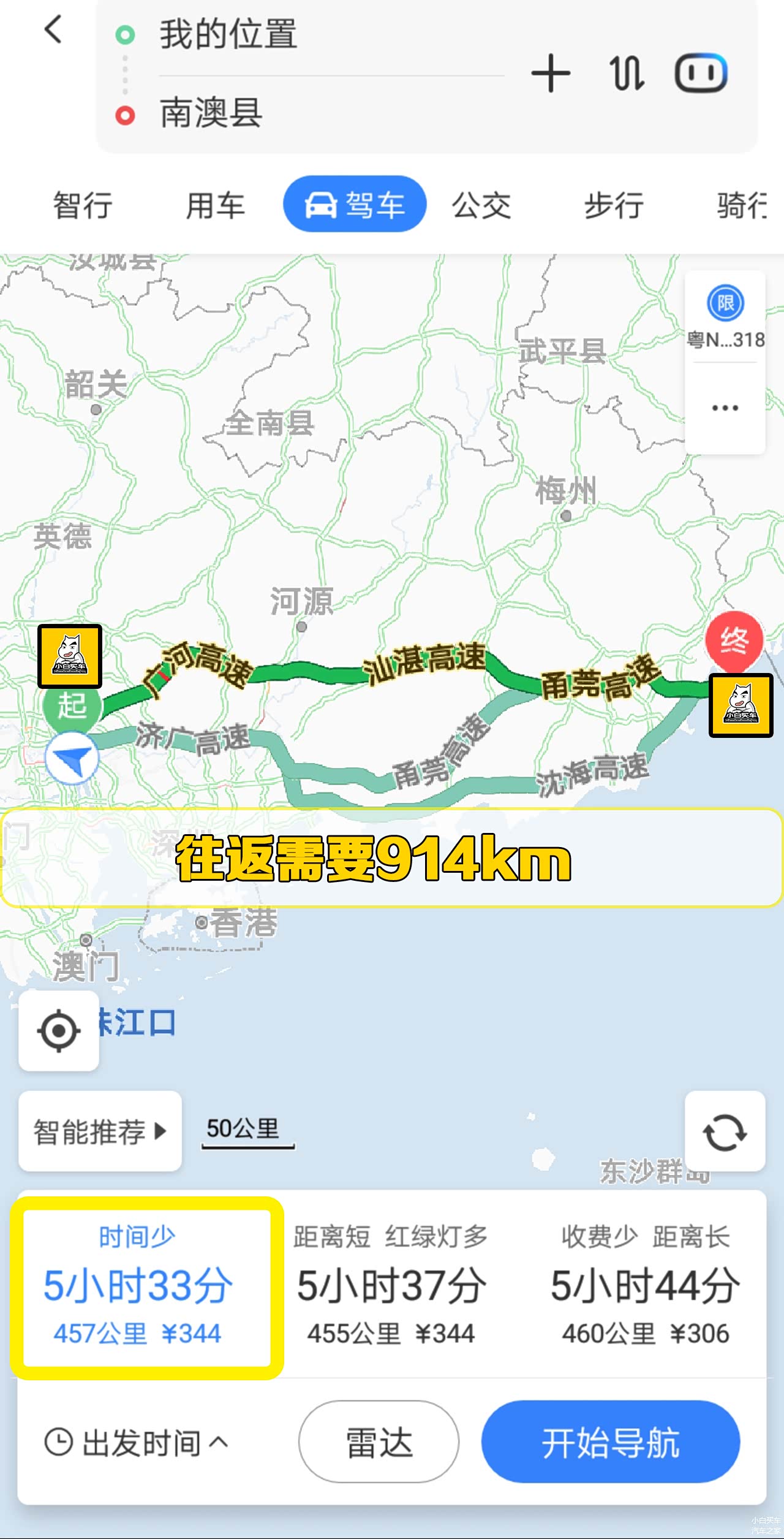 距离:广州-汕头往返(914km)