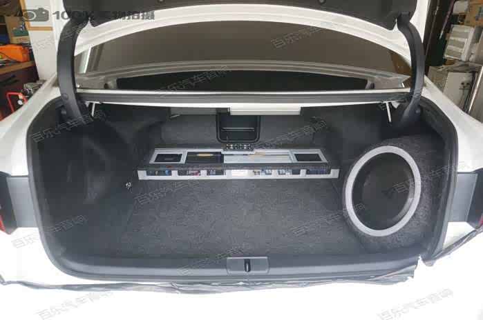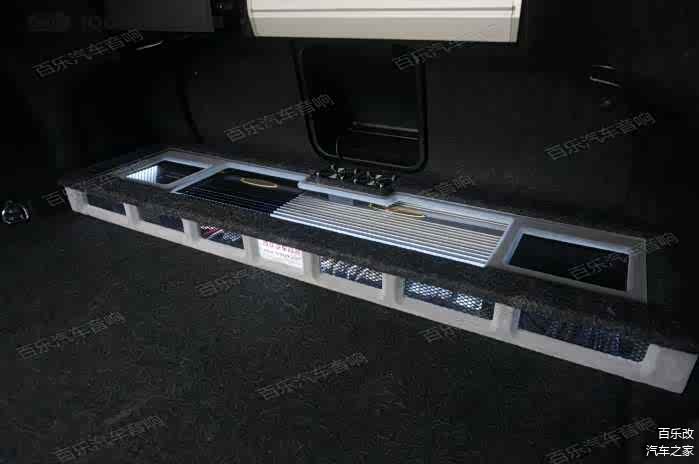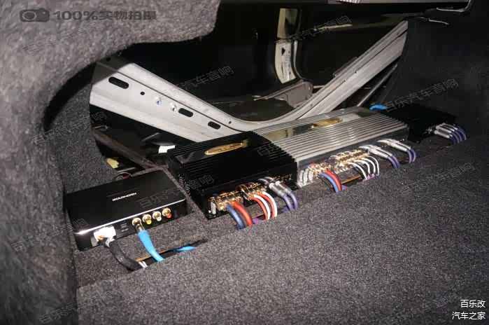 前级和功放的摆放和安装,百乐团队一直坚持改装的每台车都要用参加比赛的心态去做好每一步环节,将专业改装的品质细节体现在线材接线处理和安装位置的合理放置上,只有这样才能不负客人的热情和初衷。