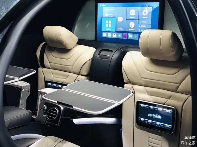 车内使用了大量的格纹真皮,后排拥有两个宛如航空座椅般的超大座位,能独立调节仰角。另外,车内可切换七种不同颜色的氛围灯。