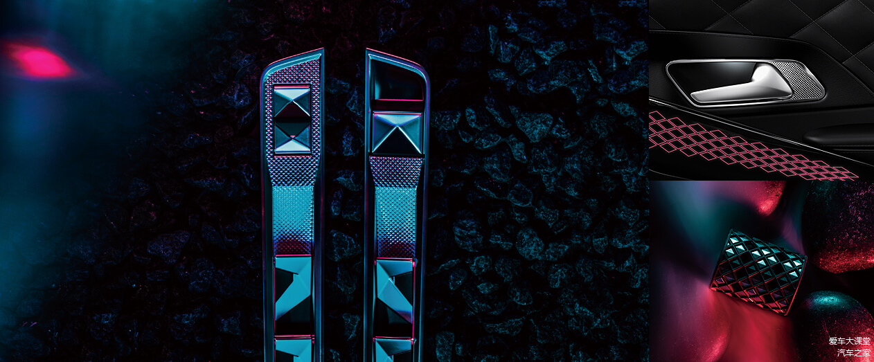 “DS之翼”家族式前脸充分展现 DS 7 的独特魅力,而其六边形前格栅就是由亮黑钻石切割菱形图案组成,与“巴黎之光”LED前大灯相互映衬,极具视觉冲击力;DS 7的3D菱格尾灯,采用最先进的激光雕刻技术,全LED灯组,反射灯源灯光柔而独特,车灯内的菱形晶块错落有致、层次分明,极具辨识度;遍布车内的巴黎饰钉工艺图腾,同样以棱形结构呈现,加以立体化的设计表现,让整车高级感呼之欲出;就连中控屏的界面设计,都是各种菱形模块,还有各个细节,都有菱形元素的影子,DS 7真的是将菱形元素运用到了极致。