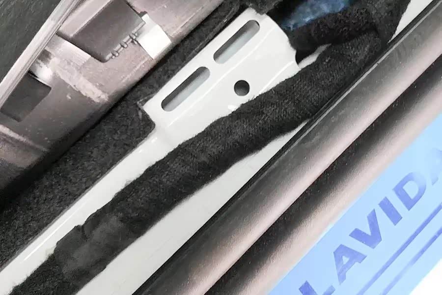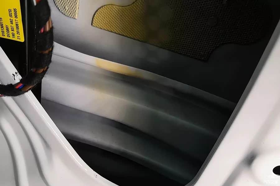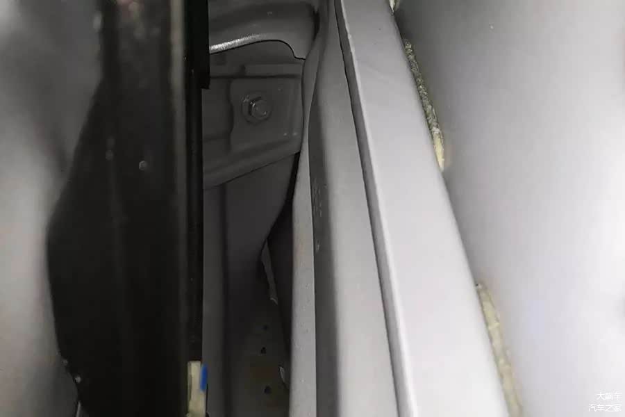 拆下前门内饰板,看到车门上有一块硬塑料的密封盖板,并且每个孔都有密封粘贴,但是并没有发现触发侧气囊的气压传感器,可能是全系都被减配了,也可能是由于这辆车的配置低,没有安装。
