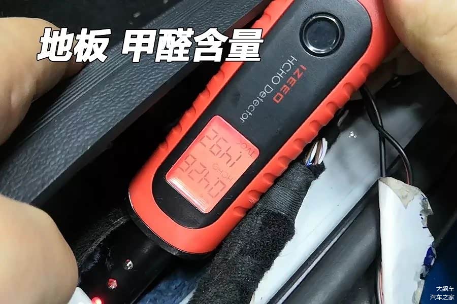 通过测试,地板中的甲醛含量为0.426毫克每立方米,是红灯报警状态,说明这辆车地板中的甲醛含量并不低。