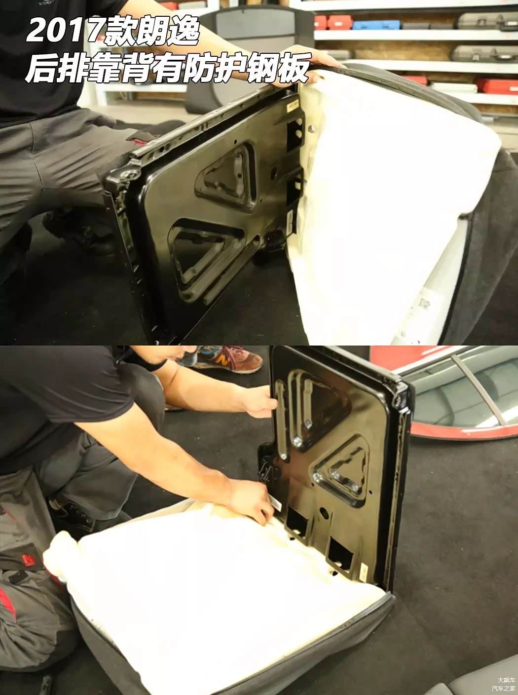 按理说大众车基本都有座椅保护钢板,哪怕是7座的夏朗,都没一个落下的。因此,我们觉得这辆朗逸的后排钢板应该是被减掉了。于是查了一下资料,曾经在一次大众官方的朗逸拆解活动中,2017款朗逸的后排座椅是有钢板的。而如今的2018新款朗逸,已经把保护钢板给去掉了!