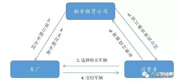 其工作流程:通过与银行和加盟商的资金融合,向汽车厂商购买客户指定汽车,加以保险公司配合,满足客户的购车需求,并收取租金以回报银行和加盟商。