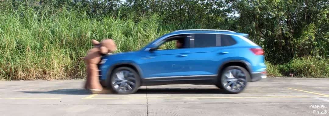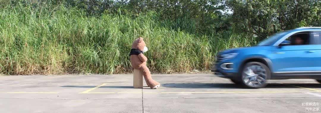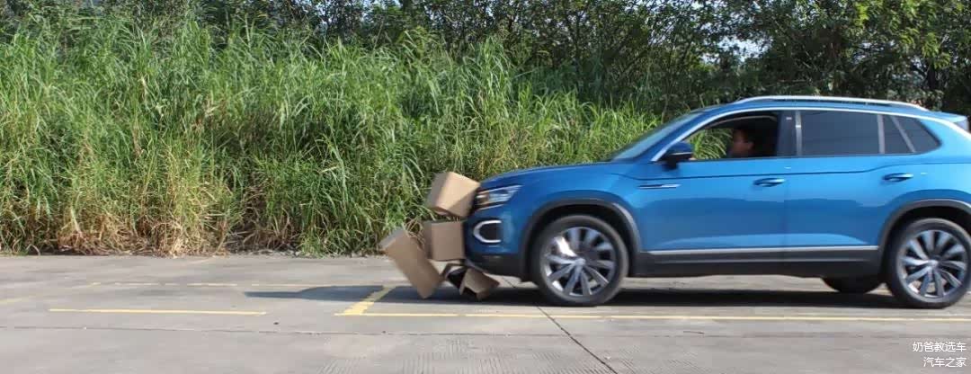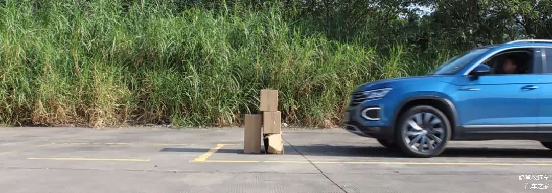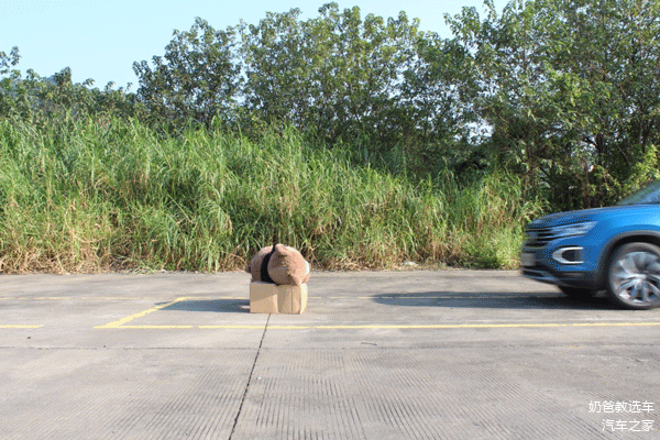 难道大众探岳的主动刹车只是噱头?可能是姿势不对吧!于是我们又把纸箱跟小棕同学的摆放位置和姿势都做了些调整进行测试: