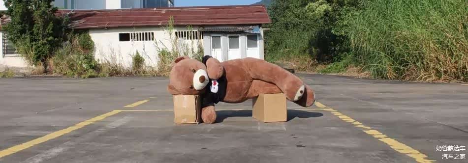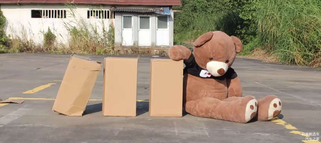 于是,我们故技重施,纸箱搭配“新同事”小棕同学(下同),想着结果应该会跟沃尔沃XC60一样吧,但连续测试了几次以后主动刹车并没有启动,小棕同学是被撞得遍体鳞伤。