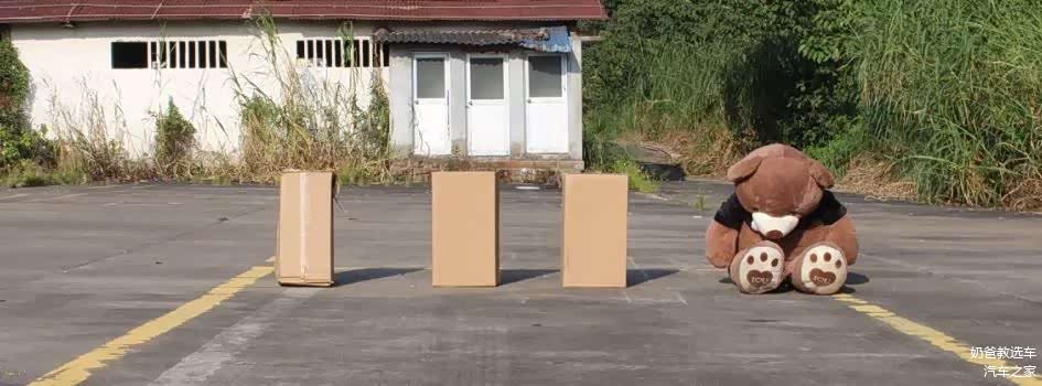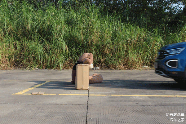 跟第一期测试沃尔沃XC60时候的测试方法保持一致,大咖实测组用纸箱和公仔做了几组试验,其中一组是看这套系统是否会识别纸箱、公仔等固定物体,另一组是对不同高度的物体作用有何不同。