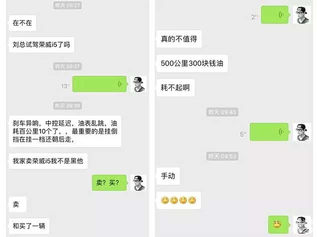 这位车主自己家就是卖荣威车型的,同时自己也买了一辆荣威i5。当时是2018年11月29号购的车,通过半个月时间的使用后,却发现荣威i5有刹车异响、油表乱跳、中控延迟等现象,另外荣威i5的油耗相对于一些车主来说也是比较高的,最重要的是挂倒档在挂一档时还是往后走,这一点是车主很头疼的问题。(下图是车主的反馈)