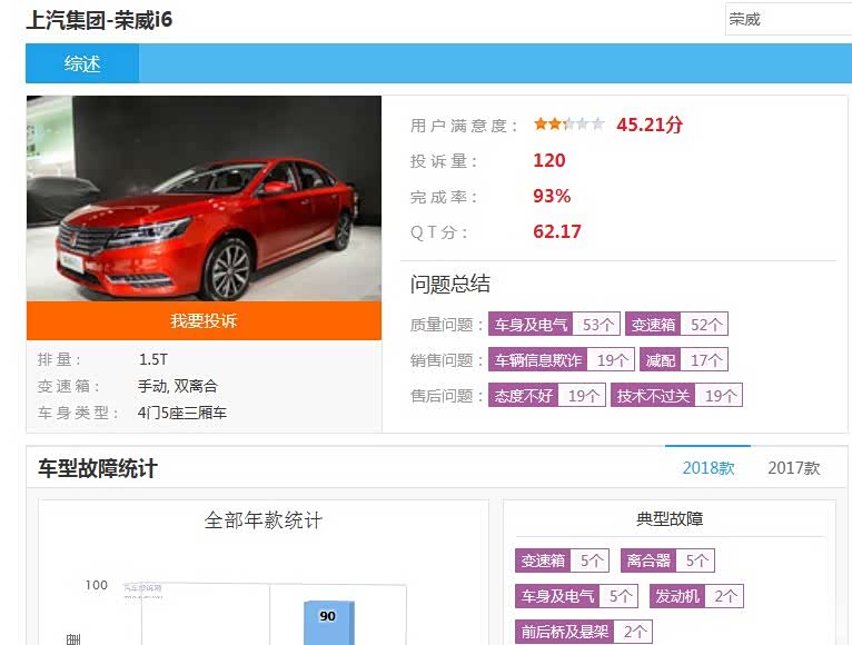 其实车主的反馈在我意料之中,因为从荣威i6我们应该能看出一些问题,荣威i6虽然销量不好,但是投诉量却较高。